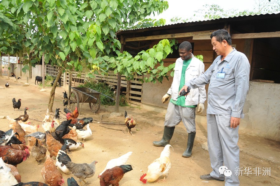 劉建家向喀麥隆雇員傳授養殖經驗。
