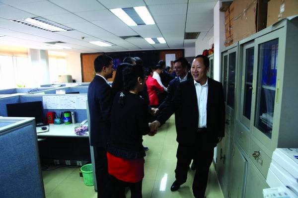 春節(jié)后首個工作日,四航局領(lǐng)導(dǎo)班子成員給四航局本部全體職工拜年,致以新春問候,送上美好祝福,鼓舞士氣。圖為四航局總經(jīng)理李惠明與職工親切握手。