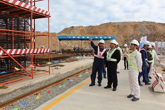 葉華能察看了陸豐核電項目攪拌站、扭王塊預制場以及重件碼頭工程沉箱預制場,了解了陸豐核電項目各工程概況、工程重難點及施工工藝等詳細情況,對沉箱鋼筋綁扎、模板吊裝等施工項目的標準化管理、工藝創新及作業人員的專業程度給予肯定,他認為項目在攪拌樓建設和文明施工方面,能為甲湖灣火電廠工程建設起到很好的借鑒作用。