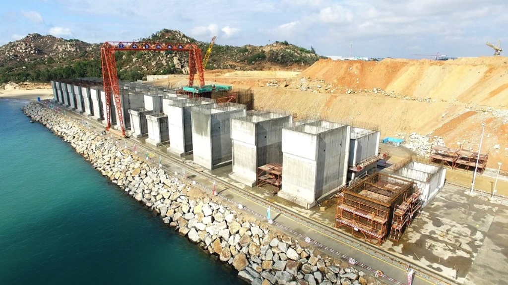 該工程合同工期501天,建設范圍包括1個重件碼頭、442.81米碼頭防波堤、巡邏艇碼頭、582.43米廠區西防波堤、港池航道疏浚與導助航標志、重件碼頭與廠區道路連接段及碼頭附屬設施等。
