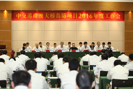 1月29日,公司副總經(jīng)理黃煥謙參加中交港珠澳大橋島隧工程2016年度工作會。港珠澳大橋管理局局長朱永靈,島隧工程總經(jīng)理部領導班子及總部、工區(qū)代表共100多人參加了會議。