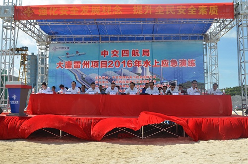 6月27日,由四航局主辦、三公司承辦的大唐電廠雷州項目2016年水上應急演練圓滿落幕。北海海事局副局長耿富海、大唐國際雷州電廠副總經理周友幸、四航局副總經理羅寬榮出席。