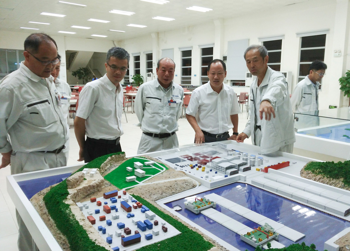 李惠明一行觀看了港珠澳大橋亮相2016年國(guó)家“十二五”科技創(chuàng)新成果展的沙盤(pán)模型,林鳴介紹了島隧工程進(jìn)展及后期施工計(jì)劃。林鳴表示,四航局島隧項(xiàng)目部很好地傳承了中國(guó)交建的品牌精神,不僅建設(shè)了世界級(jí)的沉管預(yù)制工廠(chǎng),更把它打造成了島隧工程的一個(gè)亮點(diǎn)窗口;將沙盤(pán)模型贈(zèng)送給四航局作紀(jì)念,希望中交品牌和島隧精神在四航局得到傳承與不斷發(fā)揚(yáng)。